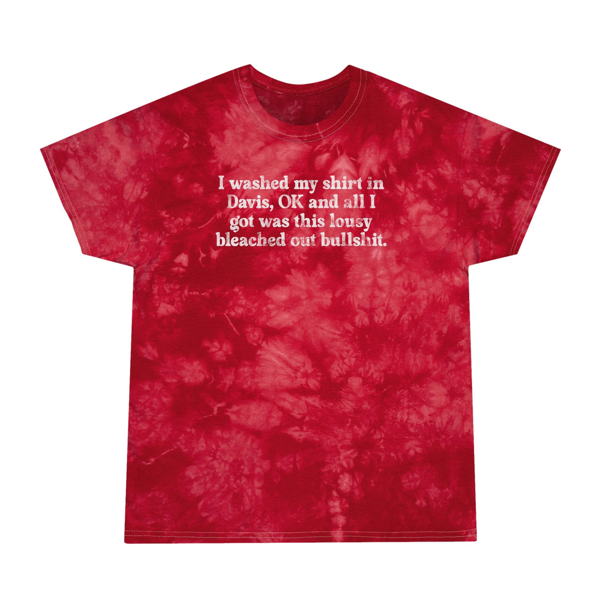 Printed and pressed on Gildan tie-dye tees. They're 100% preshrunk cotton, so size and launder accordingly.